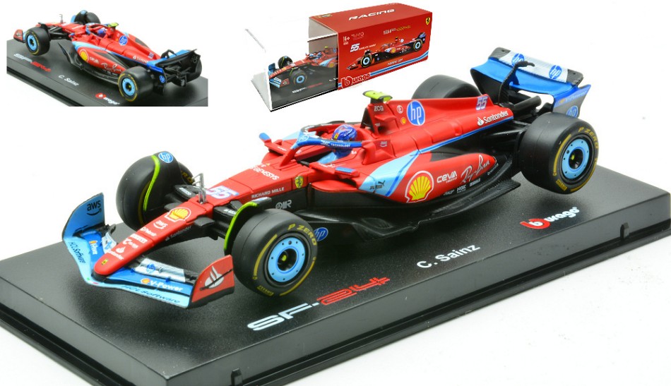 Modellino auto formula 1 F1 scala 1:43 Burago FERRARI SF-24 N.55 5th MIAMI GP 2024 CARLOS SAINZ SIGNATURE diecast modellismo statico