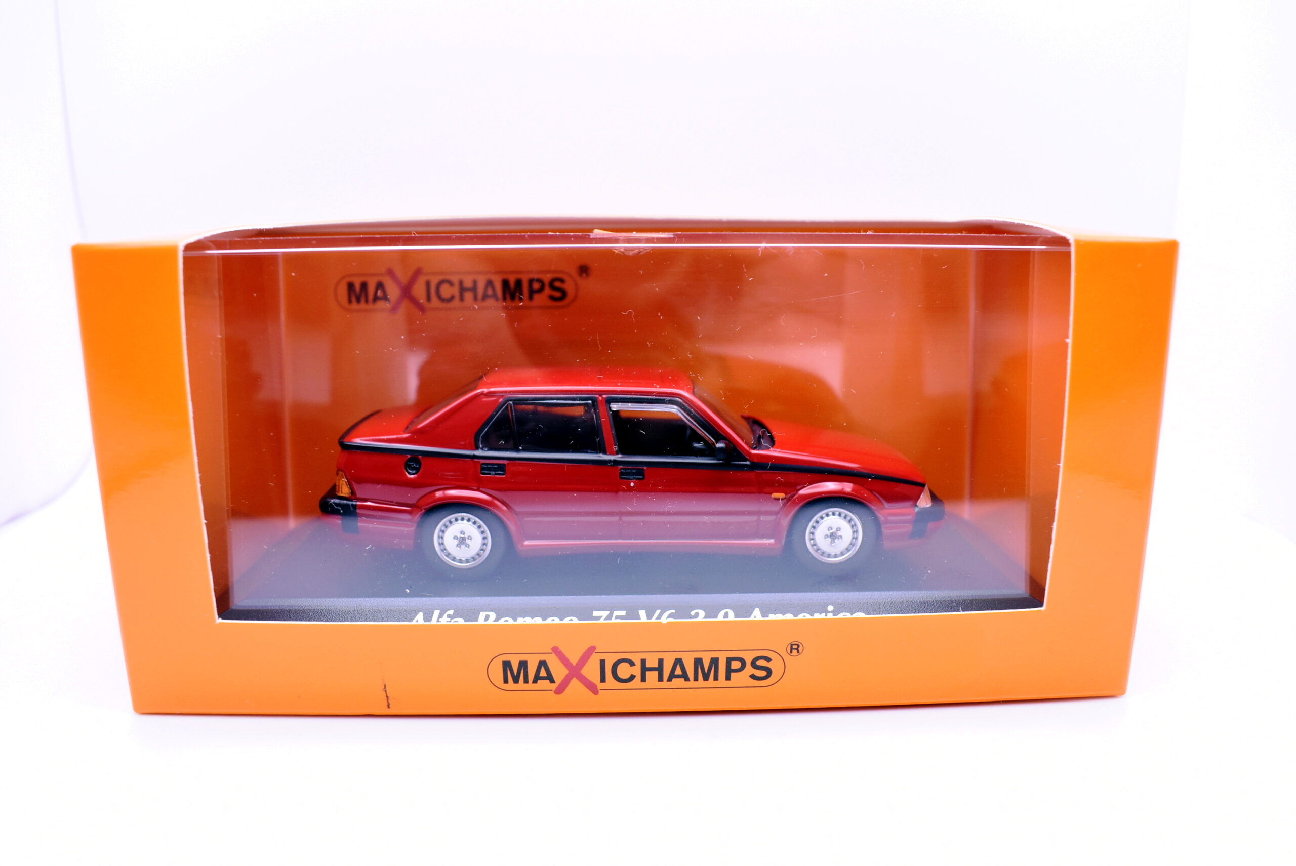 Modellino auto scala 1:43 alfa romeo 75 V6 3.0 america maxichamps diecast modellismo da collezione