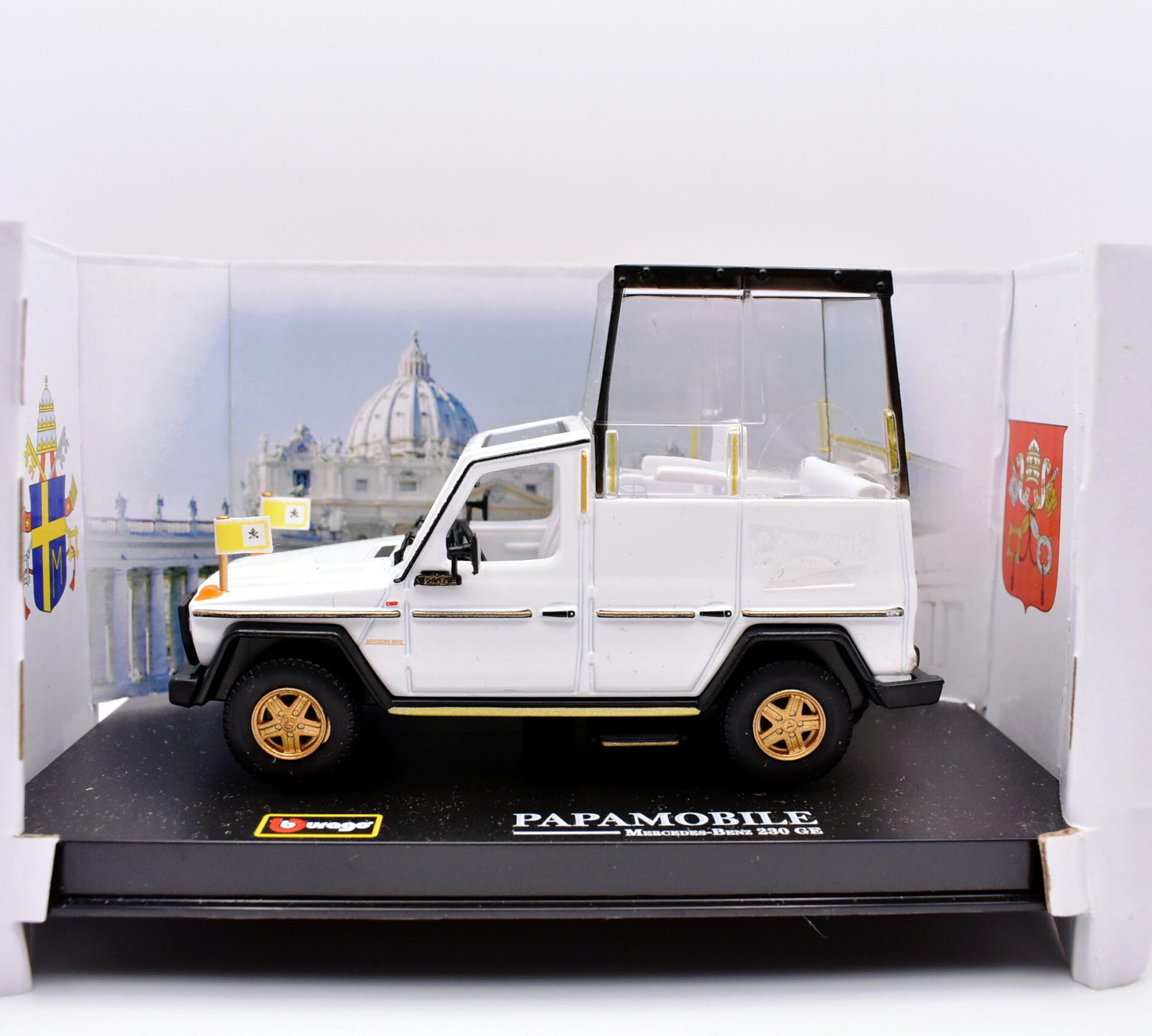 Modellino auto scala 1:43 papa mobile Mercedes benz 230 GE diecast modellismo statico da collezione