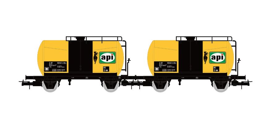 Modellino treno modellismo ferroviario Rivarossi FS 2 UNIT PACK 2-AXLE TANK WAGON API EP.IV 1:87